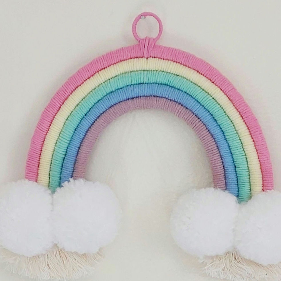 Feito à mão com todo carinho, este porta maternidade traz um delicado arco-íris em tons da sua escolha, nuvens fofinhas de pompons e o nome moldado em tricotin.